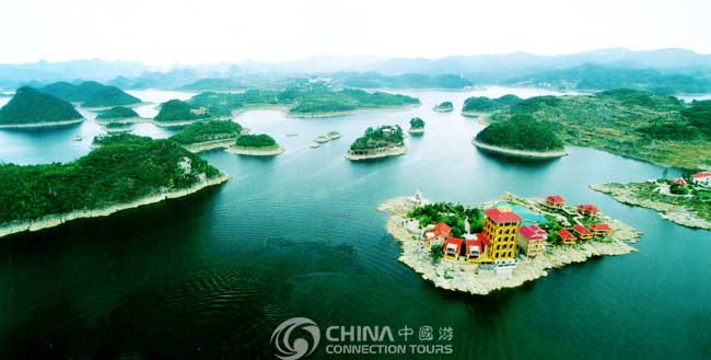 Baihua Lake is situated about 22 kilometers northwest of Guiyang, whose surface of studded with 110 isles of varying sizes and shapes; where wooded islands surround this clear fresh water lake. It covers an area of 13.5 square kilometers. The wooded island is a sanctuary to a variety of species of birds like bitters ospreys, teals, etc. To the south of the lake stands an ethnic village, which is formerly a site of an ancient battleground with remains of ancient city gate ruin and road. Next to the village is a lake bay with a beautiful name, called the Moon Bay. To the southeast of the lake is a small town called Zhuchang, which is an ancient town famous for its traditional Chinese buildings and wine; it may take you back to the remote past. The east part of the lake is a natural habitat for egrets, lake gulls, wild ducks and mandarin ducks that perch there throughout the year.