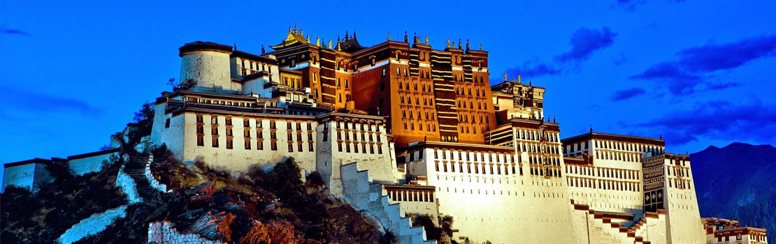 The world famous Potala Palace is located on 'Red Hill', to the west of old Lhasa. It was originally built in the 640's, during the reign of King Songtsan Gampo. The 13-story palace stands 117 meters high and has over 1000 rooms. It covers an area of 130,000 square meters. The entire building is made of stone and wood, with walls averaging 3 meters thick.